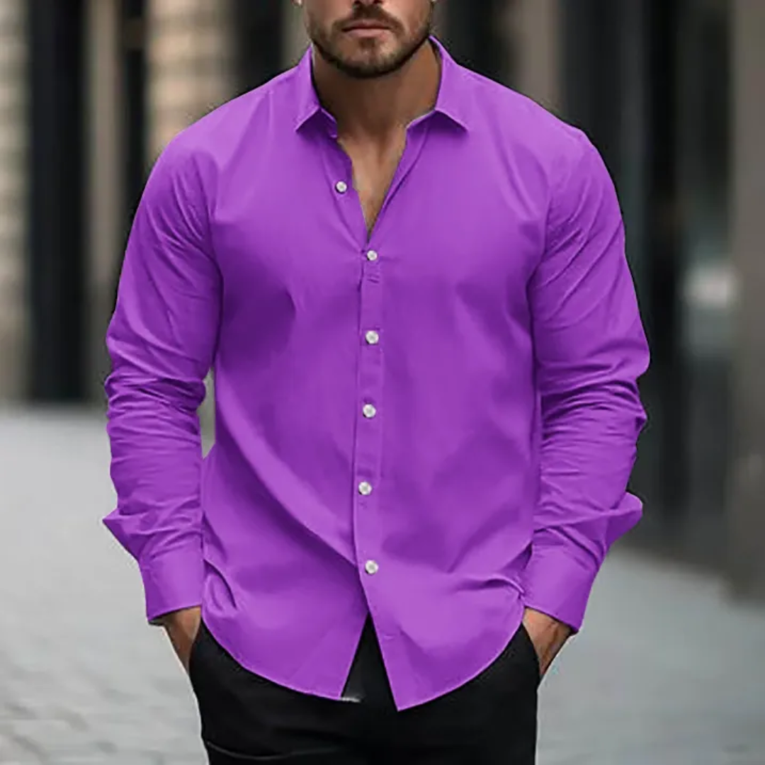 Make a bold statement with this vibrant neon long-sleeve shirt, combining sharp style and comfort. Featuring a classic lapel collar, buttoned cuffs, and a chest pocket, it’s perfect for casual outings or events where you want to stand out. Stay comfortable and stylish all day.