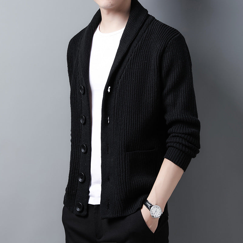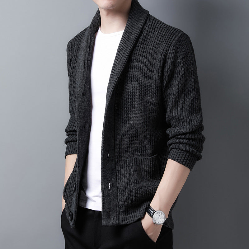 Stay cozy and look good in this classic shawl collar cardigan. The sophisticated collar and button placket are perfect for any occasion. Ribbed cuffs ensure a great fit, and deep pockets keep your hands warm. Ideal for casual t-shirts or formal shirts.