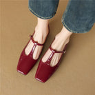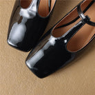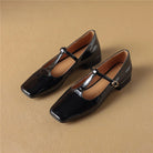 Add a touch of vintage charm to your wardrobe with these classic T-strap closed square flat shoes. Featuring a sleek, polished finish and a comfortable low heel, they offer both style and comfort. The adjustable T-strap ensures a secure fit, making them perfect for any occasion, from work to weekends.