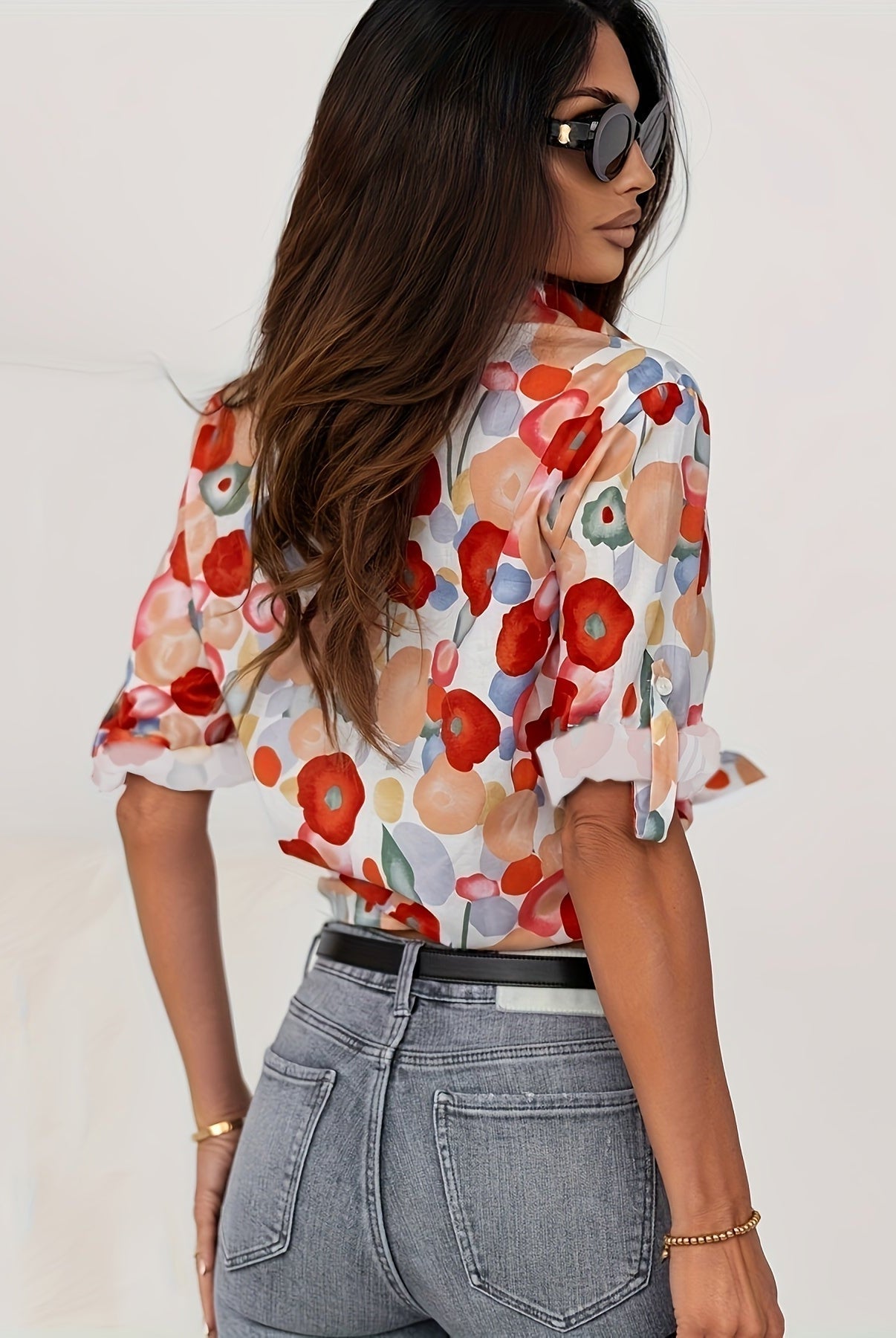 Brighten your wardrobe with this floral crewneck shirt, perfect for any occasion. With its elegant design and comfortable fit, this shirt keeps you stylish all year long. Whether you're out for a casual outing or relaxing at home, its charm and versatility make it a wardrobe staple.