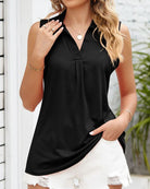 Stay cool and stylish with this V-neck sleeveless blouse, designed to blend comfort and elegance. Its timeless design and versatile silhouette make it a great choice for everything from casual outings to more polished occasions, making it perfect for adding a touch of sophistication to your summer wardrobe.