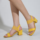 These block-heel sandals combine style and comfort, making them perfect for any summer outing. With a secure back strap and a one-character buckle, they offer both a fashionable and comfortable fit. Whether you're heading to a casual gathering or a formal event, these sandals add a modern touch to your wardrobe.
