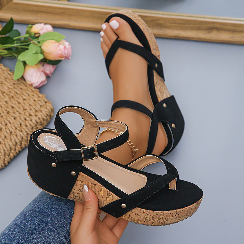 Women's Clip-Toe Wedge Sandals with Ankle Strap