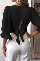 Why is this V-neck crop top with puff sleeves a favorite among customers?