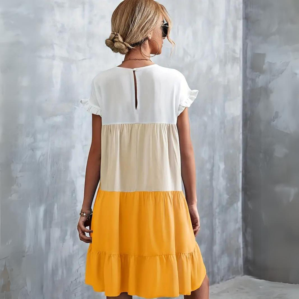 Step into summer with this elegant, colorful patchwork dress, designed to elevate your style with its vibrant design. Perfect for sunny occasions, this dress combines comfort and elegance, ensuring you feel fabulous and receive endless compliments wherever you go. It’s the ideal choice for any casual or semi-formal event.