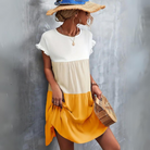 Vibrant Patchwork Design: This dress features a lively, intricate patchwork design, offering a unique and eye-catching appearance, perfect for sunny days and casual outings.