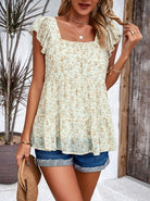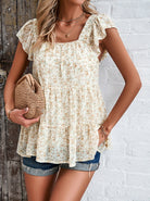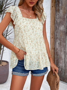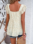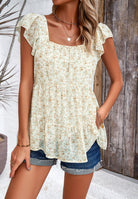 Women's Floral Square Neck Ruffle-Sleeve Top
