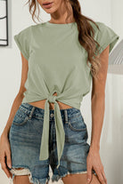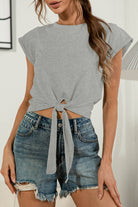Women's Crew Neck Cropped Shirt with Tie Knot