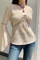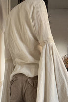 Graceful Flared Sleeves: The flared sleeves add a stylish, flowy element to the shirt, bringing movement and a touch of sophistication.