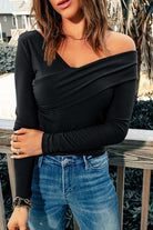 Step out with confidence in this off-shoulder V-neck long-sleeve shirt. Designed for versatility, it pairs effortlessly with jeans or skirts, making it ideal for casual outings, work, or relaxing at home. The relaxed fit and chic neckline bring a touch of elegance to any outfit.