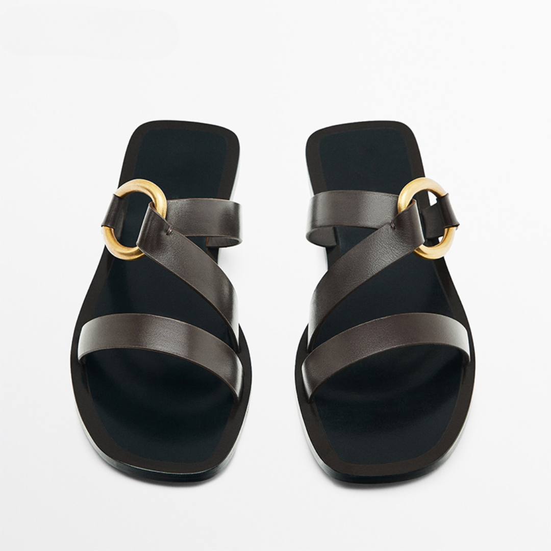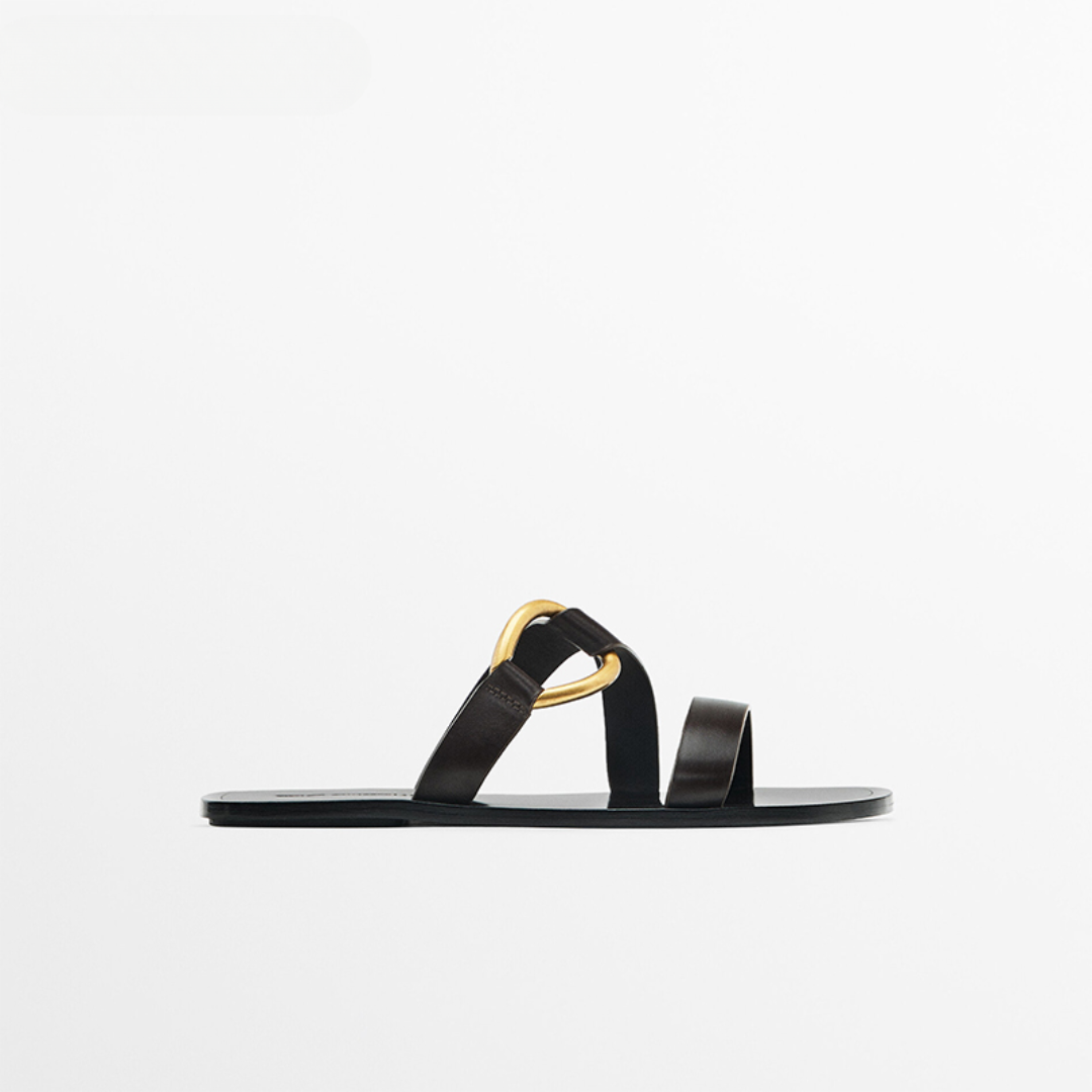 Why do hundreds of customers love these stylish metal-ring trim flat sandals?