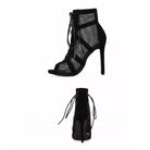 Chic and Elegant Design: These stiletto heels feature a sleek black mesh and crossed belt design, offering a modern, fashionable look that enhances any outfit.