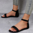 Slip into comfort and style with these sandals designed for sunny days! Featuring a back zipper for a quick fit and a flat heel for all-day comfort, these sandals are perfect for relaxing beach days or casual strolls. Their simple yet stylish design pairs well with any summer outfit, keeping you comfortable and fashionable.