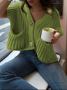 Upgrade your wardrobe with this button knit top, featuring convenient pockets and a flattering fit. Perfect for both casual and chic looks, it offers a sleek, stylish design that suits any occasion. Stay comfortable and organized while looking effortlessly put together all day long.