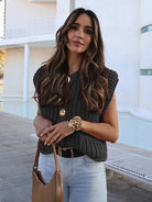 Button Detail: The stylish button design adds a modern touch, enhancing the top’s sleek appearance while providing a functional, easy-to-wear look.