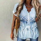 Add a touch of elegance to your everyday look with this floral V-neck blouse. Its relaxed fit and lace sleeves add a charming, feminine touch, making it perfect for casual outings or weekend get-togethers. Pair it with jeans, skirts, or shorts for a versatile and stylish look.