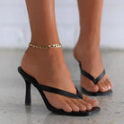 Get ready for sunny days with these chic square-toe heeled flip-flops! Designed to add a fashionable twist to your summer wardrobe, these sandals effortlessly combine comfort and style. Perfect for everything from beach days to evening outings, they elevate your look with a sleek black-and-white design.