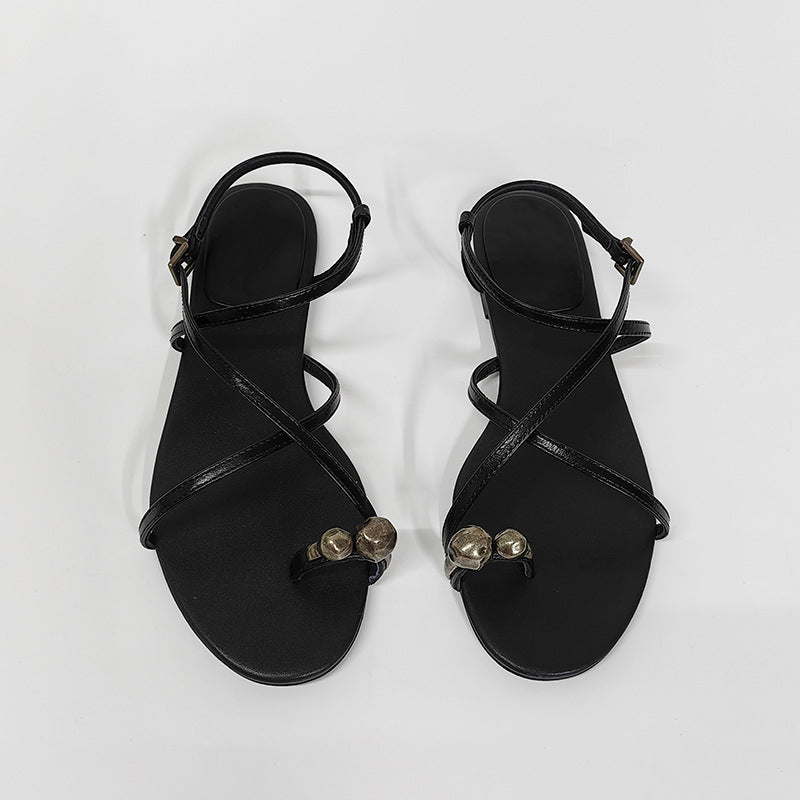 Looking for sandals that combine style and comfort? These cross-ankle strap flats are the perfect choice! Featuring a sleek open-toe design and eye-catching metal accents, they’re ideal for casual outings or summer adventures. Effortlessly versatile, these sandals will keep your feet comfortable while enhancing your favorite outfits.