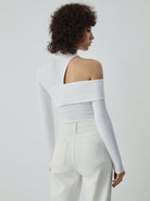 Women's Oblique Cutout Rib Long-Sleeve Shirt