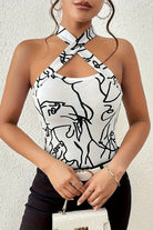 Elevate your wardrobe with this geometric-print halter top. Its bold pattern and chic design make it perfect for any occasion. Whether you're dressing up for a night out or keeping it casual, this top adds a fashionable touch that stands out and keeps you looking stylish.
