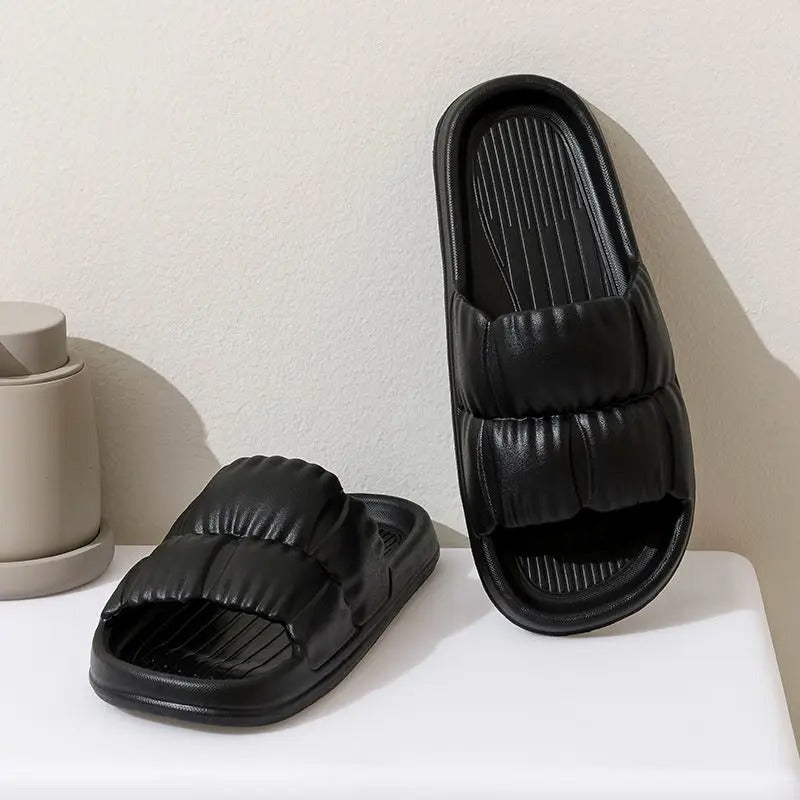 These sandals are perfect for relaxing indoors or stepping outside. With a thick sole for extra support and a lightweight design, they keep you comfortable all day long. Whether you're at home or out and about, their simple style makes them a great choice for the warmer months.