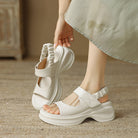 Step into summer with Peep Toe Platform Sandals! Featuring a peep-toe design, thick platform sole, and slip-on style, these sandals offer comfort and height. Elegant ruffle details make them perfect for casual or semi-formal events, adding a feminine touch to any look.
