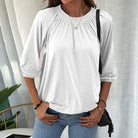 This crew neck shirt with 3/4-length raglan sleeves is your go-to for any occasion. Its simple, stylish design makes it perfect for casual outings or even a day at the office. Whether you're dressing up or down, this shirt offers the comfort and versatility you need to feel great all day long!