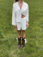 Step into spring with this chic long sleeve shirt. The unique lace-up detail and V-neck design bring a touch of fun and femininity to your outfit. With a loose fit and long sleeves, it’s perfect for both casual days and stylish streetwear looks. Stay comfortable and fashionable all season long with this versatile piece.