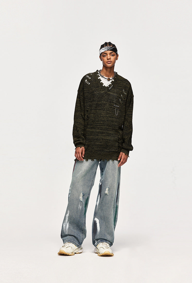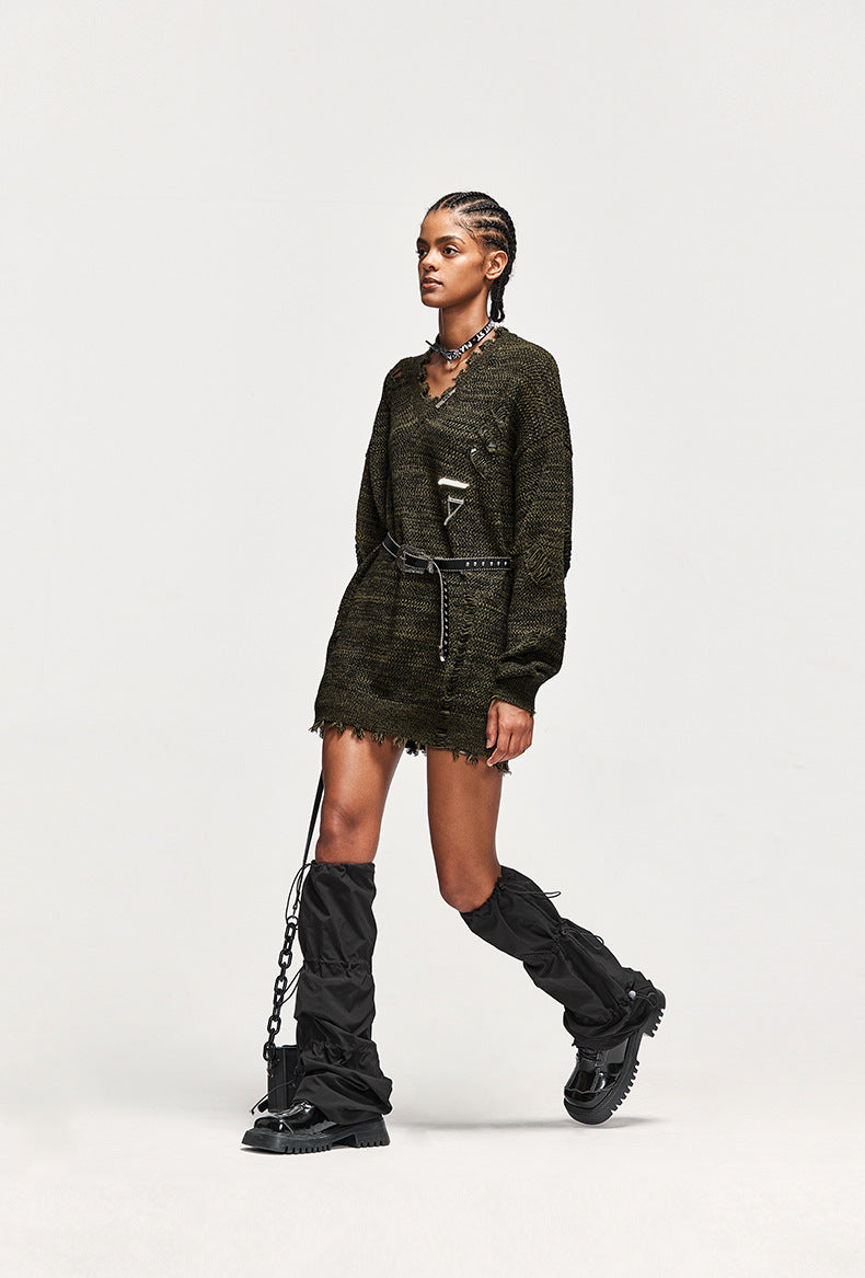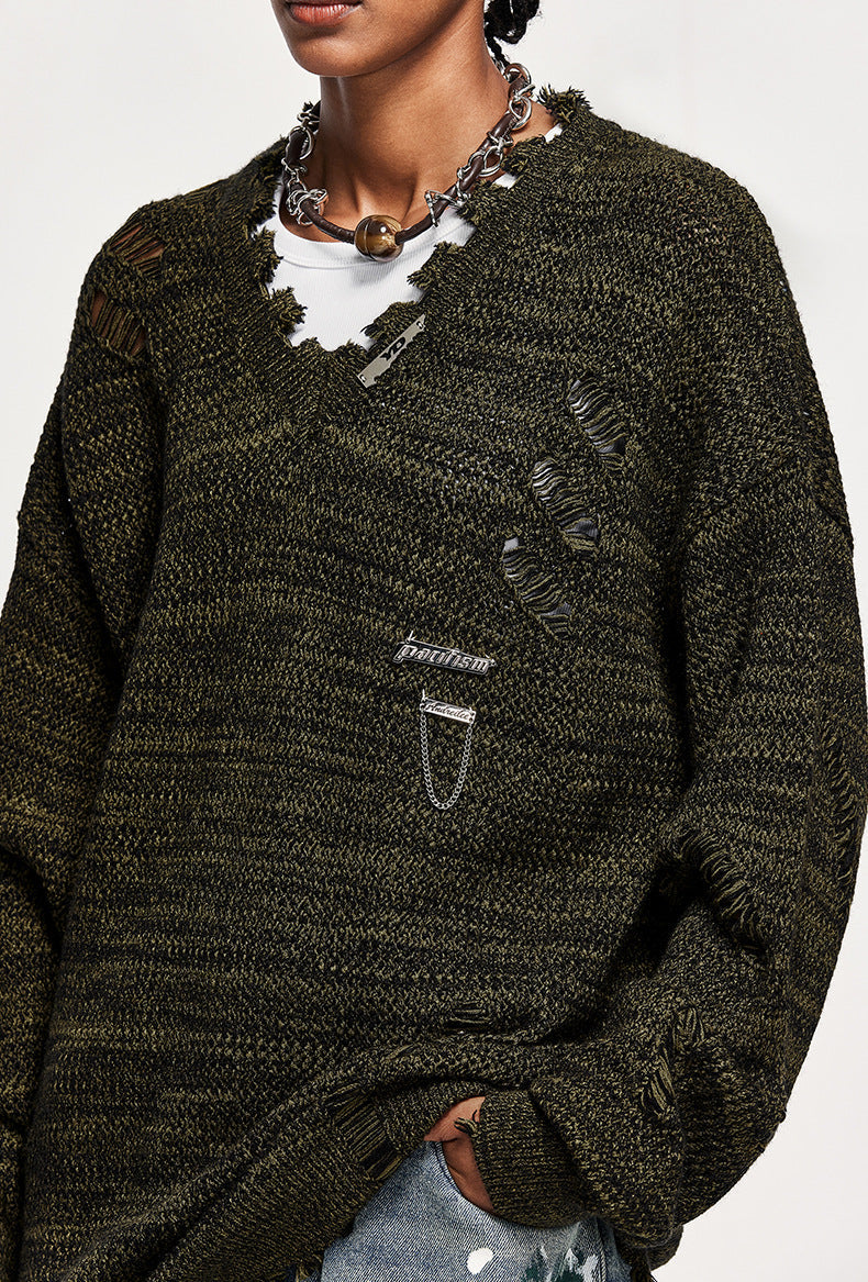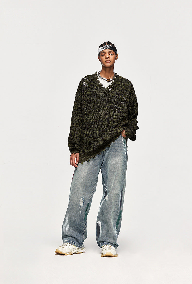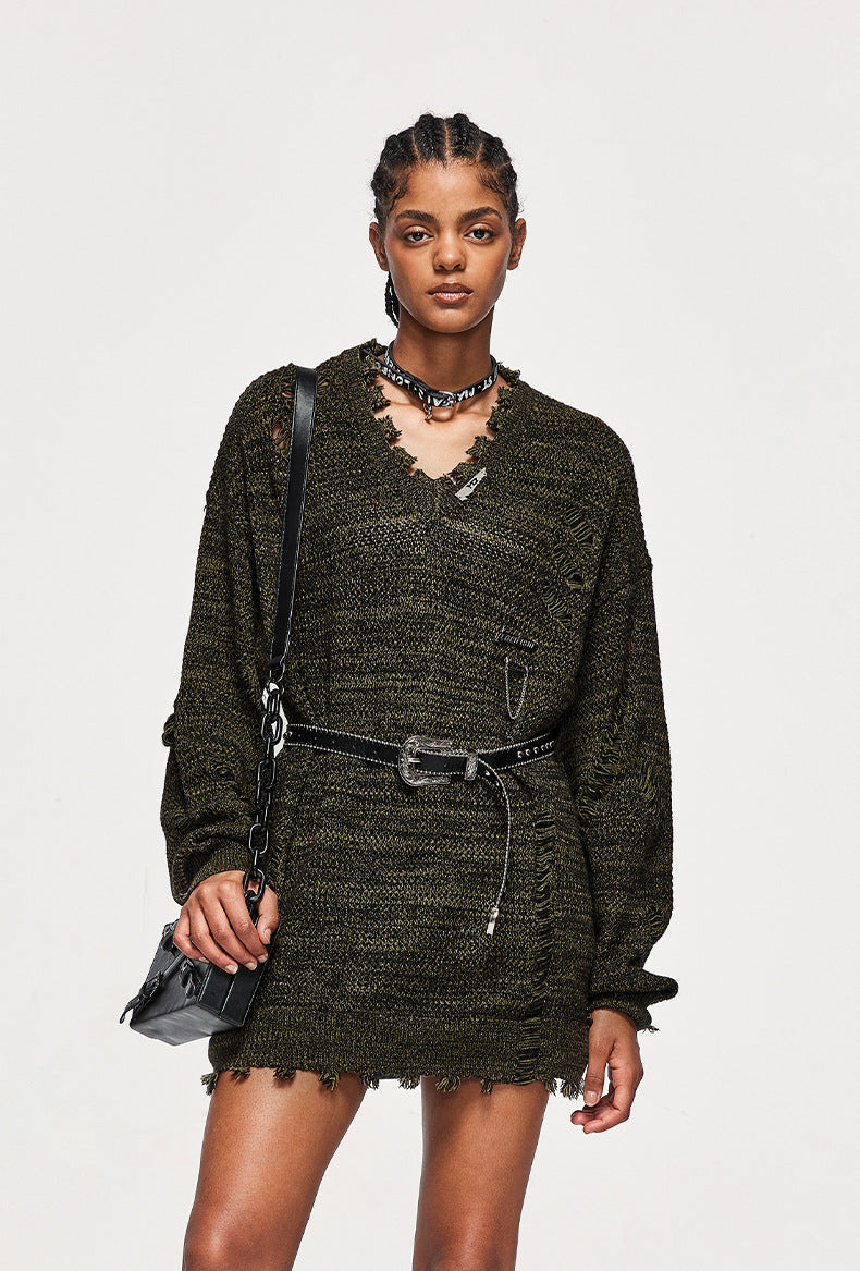 Get ready to stand out with our High Street Ripped Sweater! This trendy piece adds a fun twist to your look with its stylish ripped design. Perfect for layering or wearing on its own, this cozy sweater keeps you feeling comfortable while looking effortlessly cool.