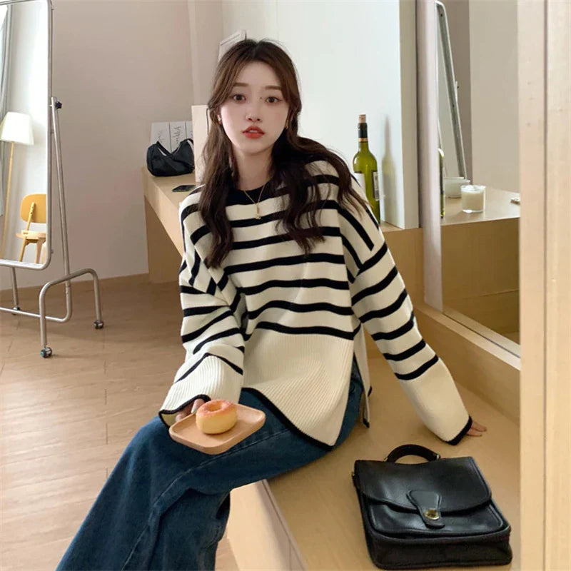 Ready to brighten your wardrobe? This playful striped sweater is perfect for cool days, combining comfort and style. Its relaxed fit and long sleeves make it ideal for outings or cozy days at home. Pair it with your favorite jeans or skirt for a complete look!