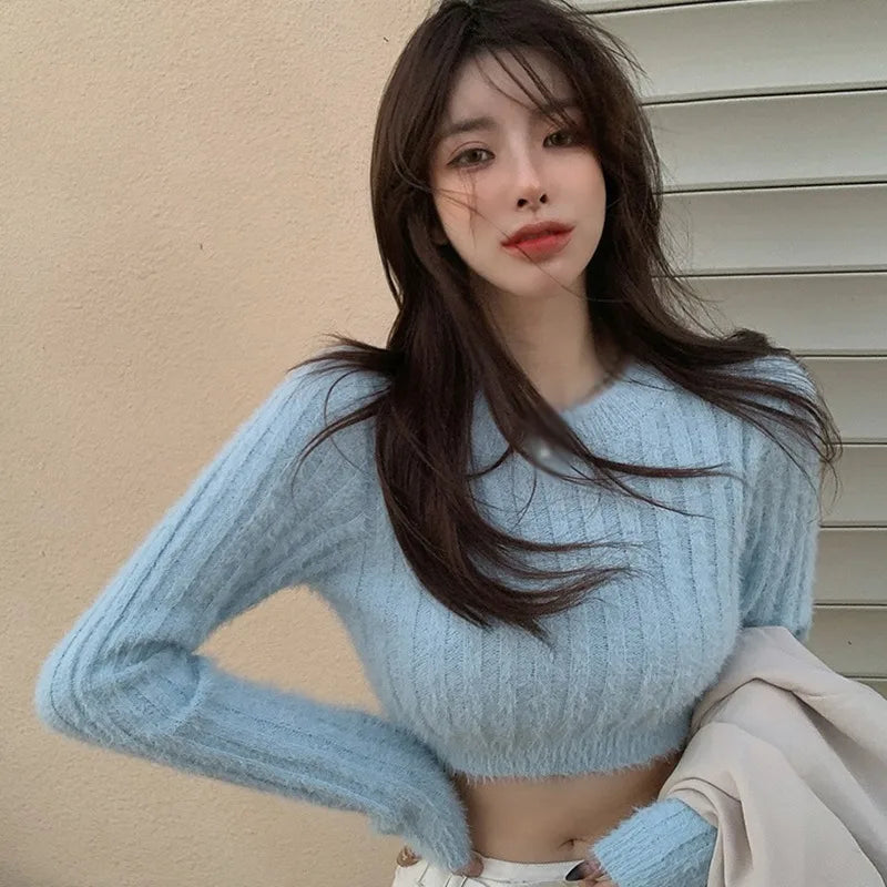 Stay warm and chic this winter with our figure-hugging cropped sweater! Its fluffy material and timeless design make it perfect for any casual occasion. Pair it with jeans or a skirt to look fabulous and feel cozy. Embrace the season in style!