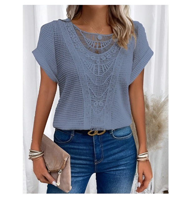 Embrace effortless elegance with this lace-patch short-sleeve top! Featuring a flattering cut and breathable design, it's perfect for warm days. Whether paired with jeans, skirts, or shorts, this versatile top keeps you cool and stylish for any occasion, combining comfort and charm in one easy look.