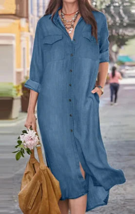 Elevate your summer wardrobe with this timeless long-sleeve button-up dress. Perfect for everything from casual outings to beach parties, it keeps you cool and stylish while offering a flattering silhouette and versatile design. Enjoy comfort and elegance all season long with this chic dress.