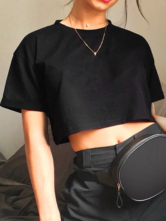 Step out with confidence in this classic crop-top shirt! Featuring a round neckline, short sleeves, and a relaxed fit, it’s perfect for casual outings or pairing with your favorite layers. Simple yet stylish, this versatile top keeps you comfortable and looking great wherever you go.