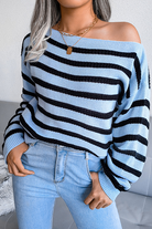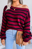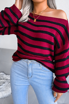 Women's Off-Shoulder Striped Knit Long-Sleeved Shirt