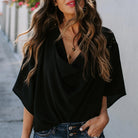 Women's Cowl-Neck Bell Short-Sleeve Blouse